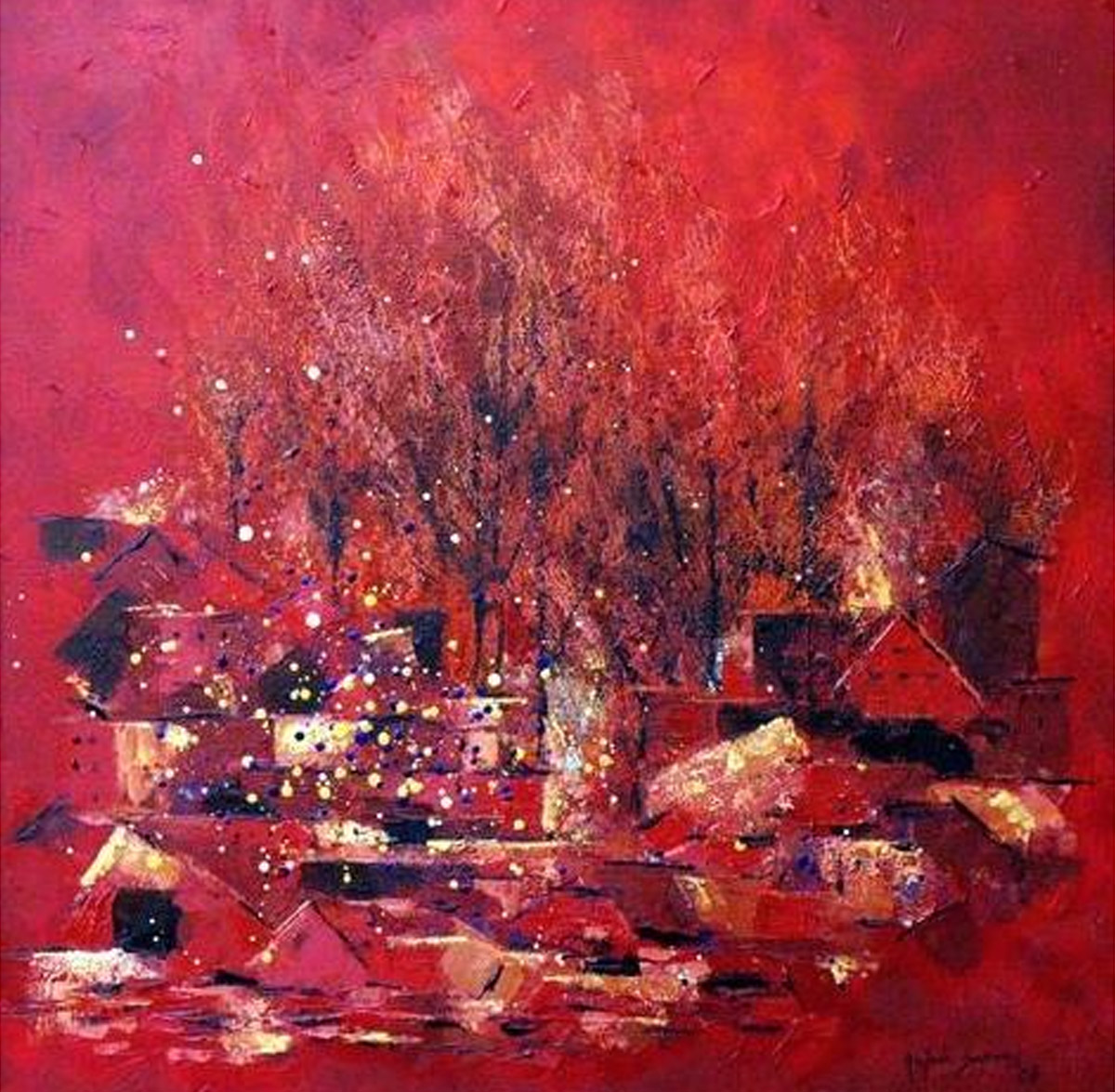 Rich colours play across the canvas creating contours and structures, shapes and shadows while heavy texturing lends a multilayered quality.