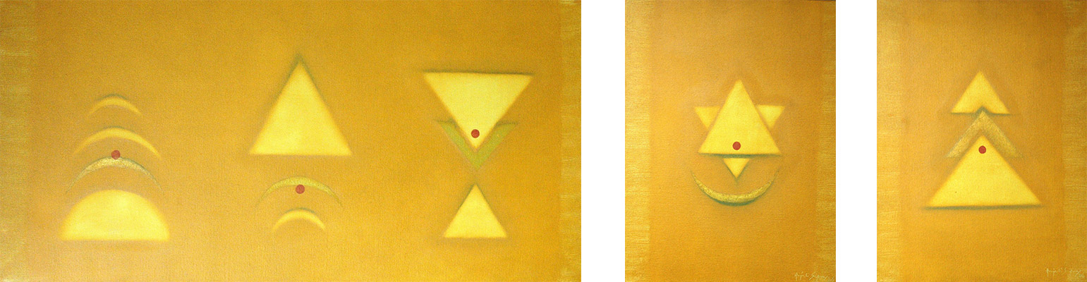 This series draws inspiration from ancient Indian philosophy and the importance of the five elements. The corporeal body, according to Ayurveda, is composed of five elements- Earth, Water, Fire, Air and Ether. When complete balance is attained between these, the body and mind achieve the ideal state. This leads the human spirit to life and hope, to emotional equilibrium and ultimately to the Supreme Being.