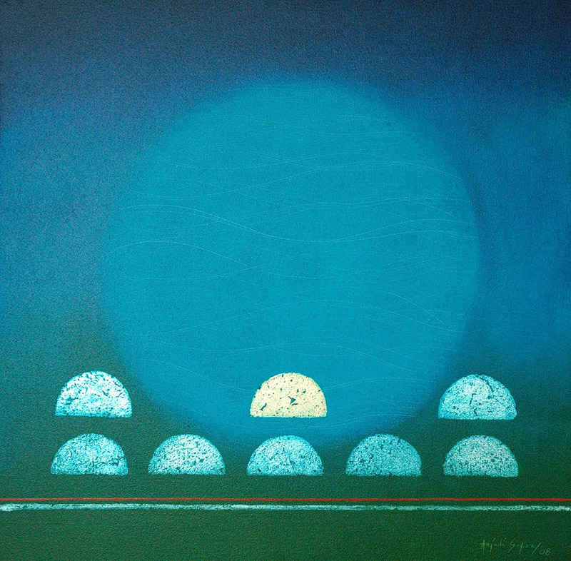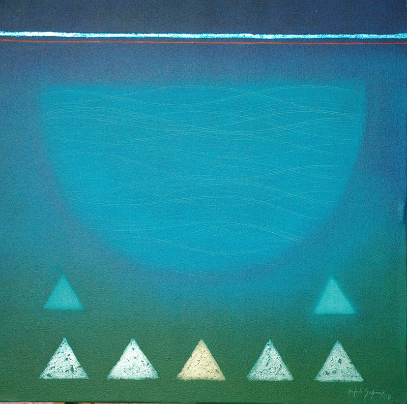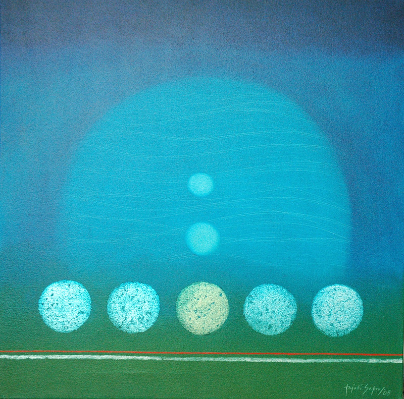 This series draws inspiration from ancient Indian philosophy and the importance of the five elements. The corporeal body, according to Ayurveda, is composed of five elements- Earth, Water, Fire, Air and Ether. When complete balance is attained between these, the body and mind achieve the ideal state. This leads the human spirit to life and hope, to emotional equilibrium and ultimately to the Supreme Being.