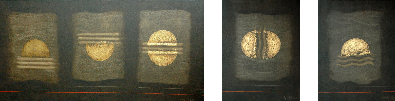 This series draws inspiration from ancient Indian philosophy and the importance of the five elements. The corporeal body, according to Ayurveda, is composed of five elements- Earth, Water, Fire, Air and Ether. When complete balance is attained between these, the body and mind achieve the ideal state. This leads the human spirit to life and hope, to emotional equilibrium and ultimately to the Supreme Being.